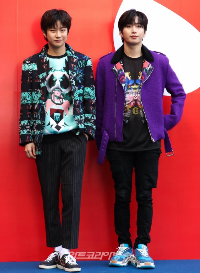 [아트코리아방송 = 이용선 기자] 유앤비 마르코와 대원이 20일 오후 서울 동대문디자인플라자(DDP)에서 열린 2019 S/S 헤라서울패션위크 디자이너 박윤희 그리디어스(GREEDILOUS)컬렉션에 참석해 포토월에서 포즈를 취하고 있다.