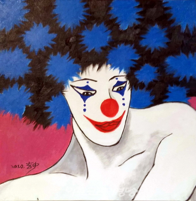 이번 작품은 삐에로를 주제로 했는데 남을 웃기기 위해 즐거움을 주기위해 노력하는 삐에로지만 무대를 떠나면 나름대로 그들의 고뇌와 아픔 슬픔들이 가슴에 전달이 되면서 그들이 마음에서 진정으로 꿈꾸며 바라는 희망이 이루어지기를 바라면서 제목을 [꿈꾸는 삐에로]정하고 비록 웃지만 그 웃음이 그들에게도 행복한 미소로 되기를 바라는 마음으로 작업을 했습니다.