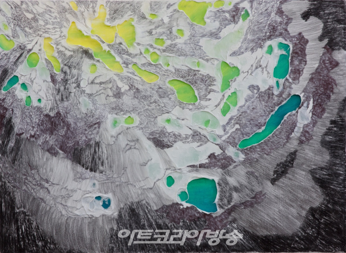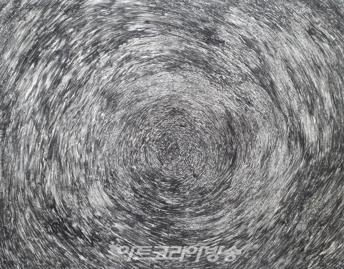 김준후는 개인의 감정의 격차를 목탄을 사용하여 소용돌이치는 변화를 보여주며 진정한 행복이란 무엇인지를 보여준다.
