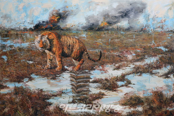 동물들을 그리기보다는 손 끝으로 만지며 작품을 구상하고 만들어내는 김남표가 캔버스를 자유로운 상상의 공간으로 사용하며 생명력 있는 동물들과 동시에 성城(castle)을 드라마틱하게 조화시켜 강한 카리스마가 드러나는 신작을 내 놓았다.