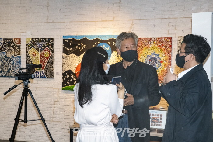 그것에 병행해서 우리 예술가들도 우주에 대한 작품도 하고, 우주를 탐구하고 같이 표현하고 같은 어떤 우리의 표현대상으로 들어오기를 희망하면서 이번에 작품들을 완성했습니다.