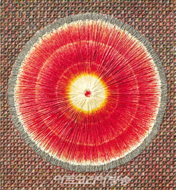 작품명 "심장의 울림"은 빛 입자들의 집합체로 작품 중심에 빛이 나는 보석이 중심에 자리하여 캔버스의 표면을 일체화하며 몰입하게 함으로써 시선을 집중 시키고자 했다. 표면은 균질적인 공간으로 반사되는 강렬한 빛들이 중심으로 시선을 빠져들게 보여 지는 표현이다. 작품의 중심은 상징적인 마음의 태양으로 인간의 신체 중 군주인 심장이다. 즉 심장은 끝없는 오묘한 작용의 빛을 나타낼 수 있다는 것을 의미한다. 심장의 울림과 빛으로 인간 개인과 각기 다른 사회, 계층이 서로를 품을 수 있다는 것을 생각할 수 있도록 의도한 작품이다.