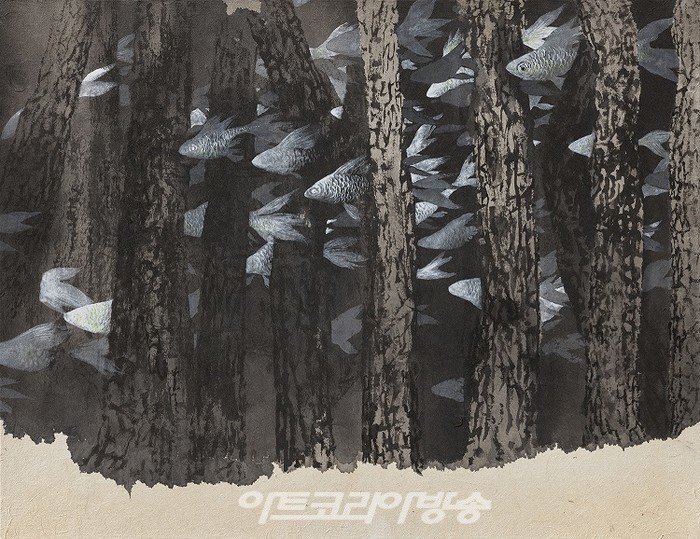 나의 붓질에는 일상의 희로애락(喜怒哀樂)에 대한 단상(斷想)이 담겨 있다. 그러나 늘 초연하고자 하는 희망적인 바람과 몸짓 역시 분명 섞여 있다. 이러한 심상을 대변하는 물고기들은 물결의 흐름을 따라 이리저리 흘러가기도 하고 모이거나 흩어지며, 물길을 거슬러 반대로 헤엄치기도 한다. 그들은 그렇게 나의 내면을 여행하며 마음의 모양을 그려낸다.