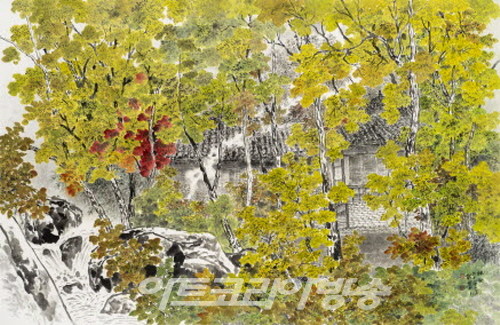 특히 봄날 대흥사의 산사에 꽃이 슬며시 끼어든 아침 풍경, 성산 일출봉의 산행이 주는 단아함, 초여름에 물씬 풍기는 설악의 여름, 그리고 그대로 흔들면 바로 낙엽이 떨어질 것 같은 영상 같은 <만추 >와 <산사추일> 등은 수묵에 채색이 깃들어지면 이렇게 멋진 작품이 거침없이 탄생하는지를 실증적으로 보여준다.