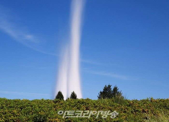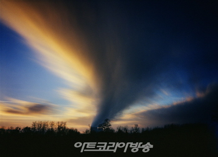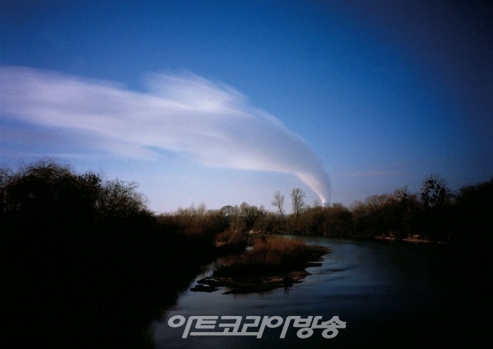 한성필 작가의 다른 작품들 속에도 그 고유의 파랑이 면면히 흐른다. 초기작 MY SEA 연작 속 바닷물과 아련한 안개 빛 사이의 어우러짐에, Seine Liver과 Loire Valery 의 원자력발전소 굴뚝 연기를 담은 GROUND CLOUD 연작의 배경에도, Pollar Heir 연작의 오로라를 담은 북극 하늘에도, INTERVENTION 연작이 주는 순백의 만년설과 빙하의 갈라짐에도, ICELAND SUMMER 연작의 이끼와 냇물의 어울림에도, 그가 마침내 찾은 마법 같은 그 파랑은 보는 이들의 시선을 끈다.
