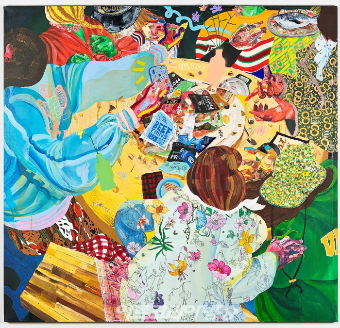 작가가 선정한 이번 전시 제목 《I HAVE IT ALL》은 그의 작품세계를 단적으로 설명해준다. 현대인들은 디지털 매체를 통해 물질도 관계도 제약없이 누린다. 자유재로 쇼핑하기는 물론 전 세계 사람들과의 관계를 맺으며 그야말로 ‘HAVE IT ALL’, 모든 걸 가질 수 있다. 그러나 오프라인에선 광고의 홍수 속 무분별한 과소비와 지나친 관심의 구걸 및 소통의 부재를 경험하기 마련인데, 작가는 이와 같은 현실의 양가성을 화폭에 담는다. 다이어의 작품에는 패스트푸드, 고칼로리의 간식, 건강식품, 약, 핸드폰, 책, 노트북, 주변 친구들 등 랜덤한 사물과 인물이 한가득 등장한다. 저마다 독창적인 구도로 배치된 요소들은 시각적인 즐거움을 주는 동시에 그 잡다함으로 어지러움을 유발하기도 한다. 바로 그 지점에서 작가는 상품과 관계가 넘쳐나는 화려한 사회 이면에 자리한 신체와 정신 건강의 문제를 다룬다.