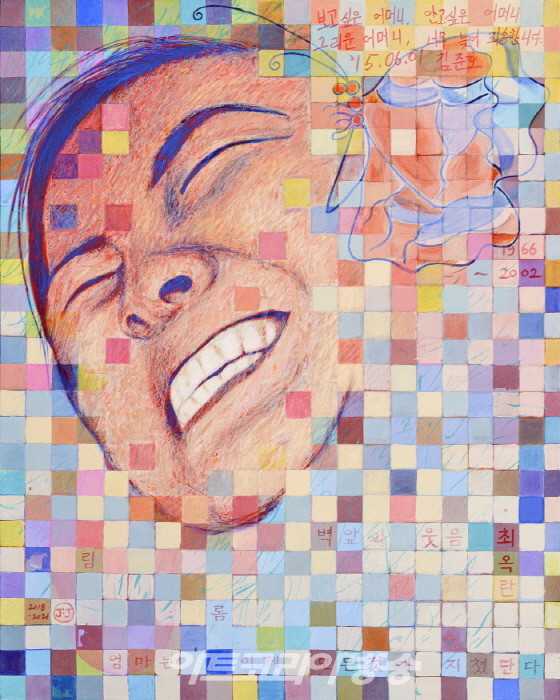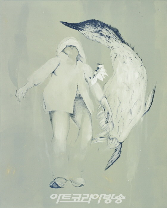 합리적 이성적 사고로 구축된 사회에서 ‘죽은 새’는 관심과 돌봄의 대상이 아니다. 미관(美觀)과 위생을 위해 서둘러 치워야 하는 오염물질일 뿐이다. 이 그림에서 새는 인간중심의 이분법적 사고로 바라본 자연이 아니다. 작가는 인간과 동등한 피조물인 생명이 다한 새의 처지를 공감한다. <죽은 새와 함께>(2021)는 지금껏 작가가 작품을 통해서 담아냈던 대상들과 관계를 맺는 작가의 태도, 즉 생명의 생성과 소멸, 사회에서 소외된 약한 존재들에 대한 애정, 그리고 이러한 대상과의 공감과 연대를 잘 보여주는 작품이다.