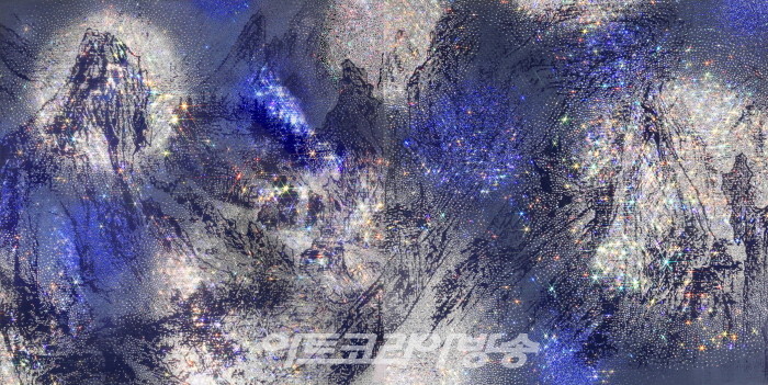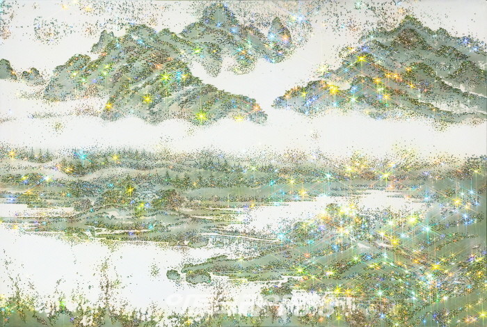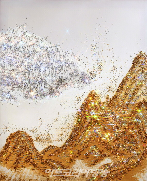 스와로브스키의 물질은 작가의 손을 거쳐 새로운 산수 풍경이 만들어졌으며, 관람자들은 동선에 따라 움직이는 빛의 항연을 느낄 수 있을 것이며, 마치 동적인 특징과 함께 산수의 거대함과 회화성을 감상 할 수 있으며, 구상성과 추상성을 동시에 표현하고 있다. 작품 속 크리스탈은 작가에게 물감과 같은 역할을 하여 다양한 색상의 크리스탈은 산수풍경의 변화된 감정과 이미지를 연출하는 중요한 역할을 하고 있다.