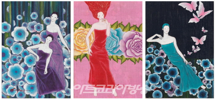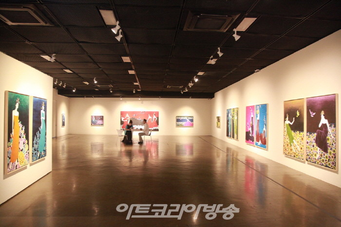 [아트코리아방송 = 김성수 기자] 작품 속 당당한 포즈의 여성은 독립적이고 건강한 삶을 누리는 이 시대의 여성상을 선명하게 표현하여 관람객들에게 사람을 통해 얻을 수 있는 강한 힘을 그림으로 전달하는 김진희 작가는 2021년 9월 15일(수) ~ 9월 24일(금)까지 서울 인사동 소재의 인사아트센터 3층 G&J 전시관에서 "참을 수 없는 존재의 가벼움, 날아오르다" 타이틀로 개인전을 진행 중에 있다. 원색을 진하게 채색하여 작품마다 느껴지는 긍정의 영향력이 강력하며, 한국화와 서양화 재료를 혼합하여 작품을 완성해 조화로운 공존을 이야기 한다.