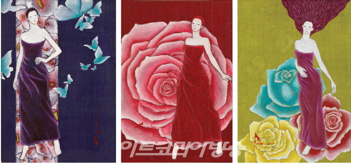 ‘참을 수 없는 존재의 가벼움, 날아오르다‘ 연작에서 드러나는 여인상은 창백하면서도 가냘픈 몸매를 지니나, 태아를 담고 있는 볼록한 배, 바람에 흩날리는 한복의 실루엣과 소녀에서 여인으로의 재탄생을 알리는 결혼식에서 볼 수 있는 족두리와 비녀, 한껏 치장한 여인은 새로운 도약을 상징하며, 자아를 관조하며 사색에 잠긴 듯 치켜 올려진 눈매, 간결하면서도 단아하게 마무리 된 선을 사용함으로써 과거와 현대를 아우르는 한국여인의 우아한 자태를 담고 있다.