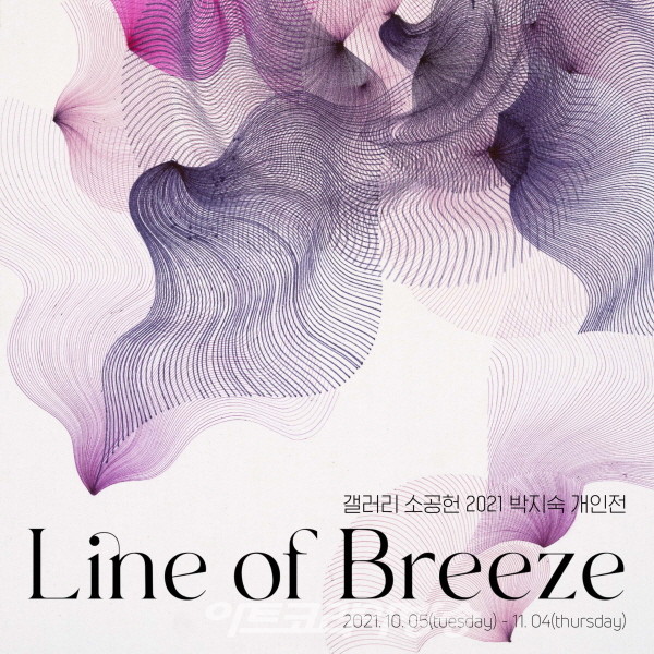 [아트코리아방송 = 김미영 기자] 박지숙 작가의 ‘Line of Breeze’전이 서울 종로구 원서동 갤러리 소공헌에서 열리고 있다. 갤러리 소공헌은 박지숙 작가의 ‘Line of Breeze’전을 10월 5일(화)부터 내달 4일(목)까지 한 달 동안 개최한다.