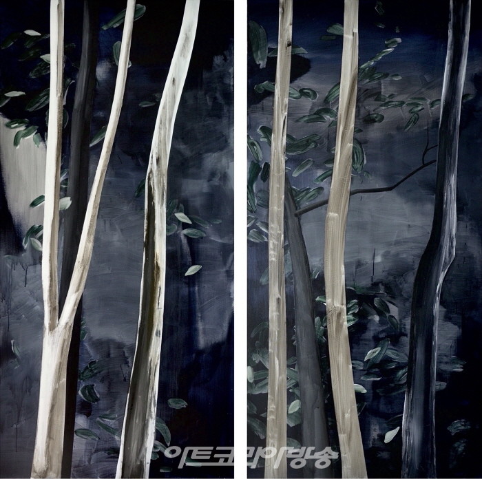 스케치를 생략하고 단색의 절제된 색체만을 사용하는 작가는 은밀하게 감도는 역동성과 고요함, 냉정함, 이성적인 붓질로 놀랍도록 맑고 순수한 회화를 완성한다.