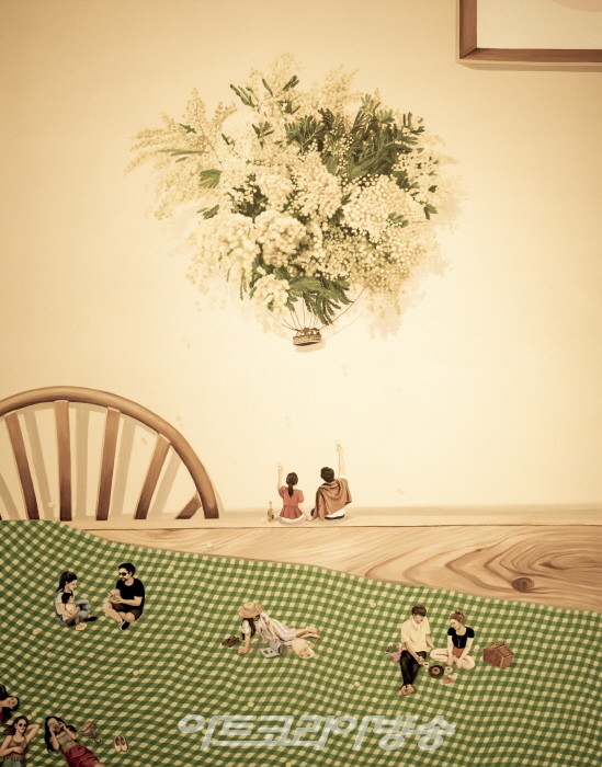작가는 그림을 통해 “우리를 살아가게 하는 긍정적인 에너지 - ‘삶의 모티브’들을 작품에 담아내었으며 ‘꽃 열기구’는 모두가 행복하길 바라는 마음이 담긴 본인의 분신이자 광활한 공간을 이어주는 메신저”라고 행복한 미소를 지었다.