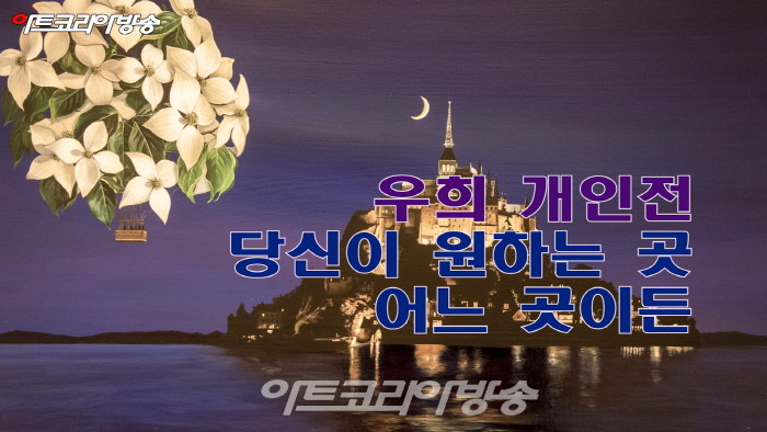 우희 작가가 꽃 열기구란 주제로 작품을 접하게 된 동기를 묻는 질문에 “빠르게 변하는 세상 속에서 어느 곳에도 온전히 속하지 못한 채 버티는 삶을 살았었습니다.