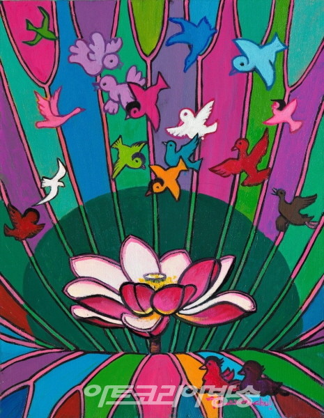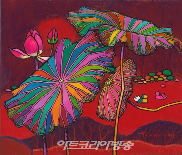 양원철 작가는 “시원하게 보이는 널따란 잎으로 지저분한 부분을 가리고 우아한 꽃을 피워내는 연은 우리 사회의 모습과 닮았다”면서 “연의 이러한 모습이 추한 면을 감추고 선만을 실천하며 생활하려는 선한 사람들과 겹쳐 보였다. 사람들에게 변치 않은 영감을 전할 수 있는 생명력 있는 작품을 통해 미래에는 선(善)과 사랑이 넘치는 낙원을 만들고 싶어 연을 그리는 것”이라고 배경을 밝혔다.