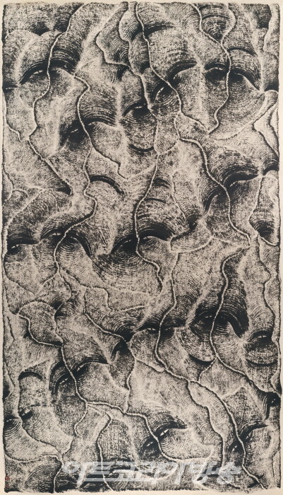 글자의 기원이 되는 갑골문자는 천지신명과 소통하고자 하는 의도에서 만들어졌기에 작가는 조형에 주술과 치유의 힘이 깃들어 있다고 생각한다. 먹으로 표현된 검정색 지구 위에 경면주사의 붉은색으로 만들어진 형상과 함께하는 화성 여행에 관객들을 초대하고 있다.
