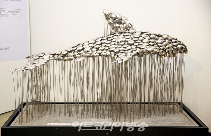이송준 작가는 본 기자의 이번 전시에 대해 설명해 달라는 질문에 "스마트바이오팜 기업과 같이 전시 참여를 하게 되었습니다. 원래 저는 스테인레스 그릇이나 밥그릇, 냉면그릇 등으로 작업을 하는 작가인데 스마트팜의 농장에 구역이 정해져 있는데 스마트팜 같은 경우에는 농장에서나 볼 수 있는 고유공간에 있어야 될 것들이 떨어져서 헤체되어 나와서 우리 삶 속으로 재구성되어 들어와서 삶이 윤택해 지는 스마트팜의 회사 기획이 있어서 작품을 하게 되었다."고 말했다.
