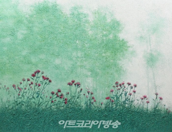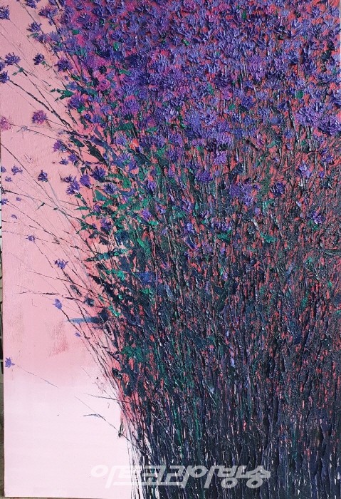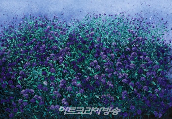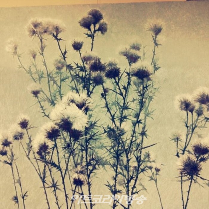 이명화 작가는 주로 자연 속에 존재하는 모든 사물을 구상적 풍경과 정물을 주제로 작업하였는데 꽤 오래전에 수많은 잡초들 중의 하나인 ‘엉겅퀴’와 만나게 된다.