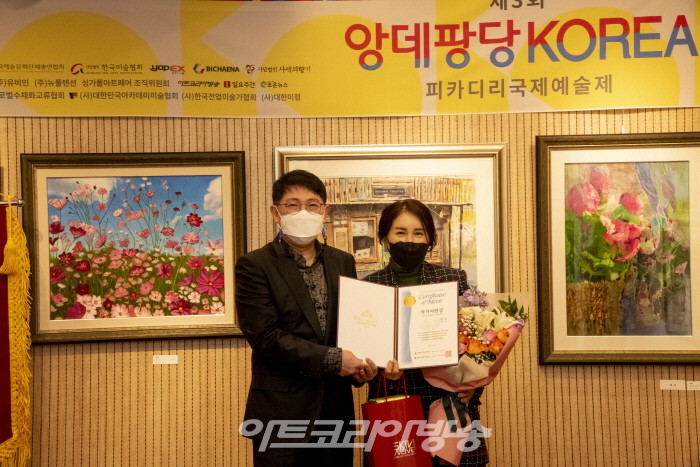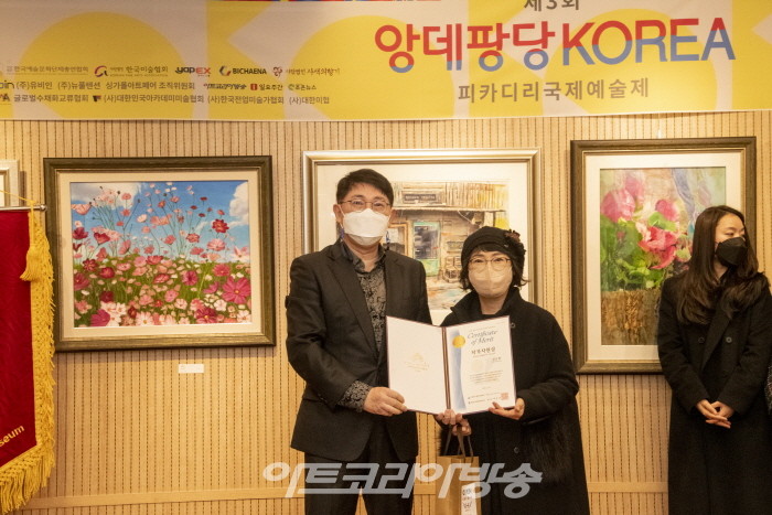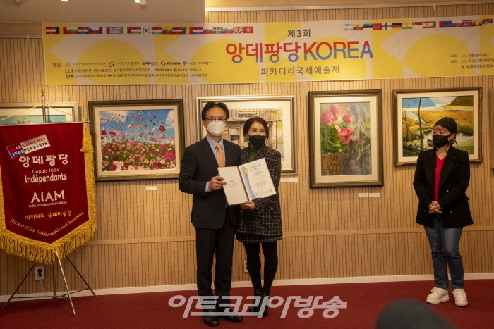 [아트코리아방송 = 김한정 기자] 제3회 앙데팡당KOREA 피카디리국제예술제 '회원전, 공모작가전, 영상개인전' 개막식이 2021년 12월 22일 서울 강남구 도산대로 549에 위치한 청담동 헤르지움 아트센타에서 진행되었다.