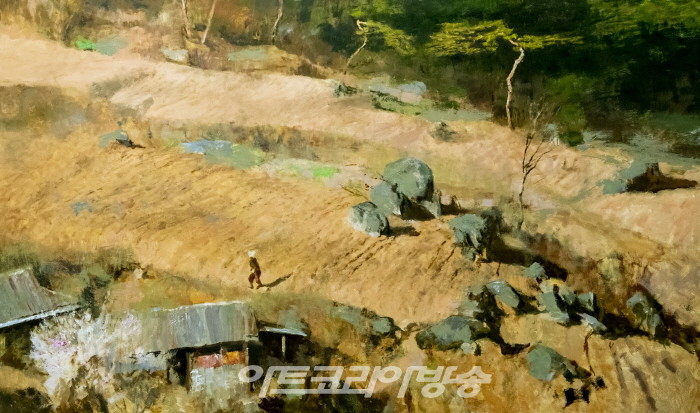 저 그림이 제 손에 없을 때라 팔렸다고 했더니 다시 그려달라고 하길래 젊은 혈기에 '나는 한 번 그린 그림은 다시 안그린다.'고 했더니 다른 그림이라도 그려달라고 해서 파리 세느강변의 모습을 그려 주었더니 파리의 흔한 풍경이 아닌 당신의 나라의 풍경을 원한다고 말해서 한국에 돌아와서 가만히 생각해 보니 우리나라의 좋은 풍경을 두고 외국을 다녔나 싶어 그때부터 대한민국의 풍경을 찾아 본격적으로 스케치를 다니게 되었다."고 말했다.