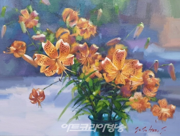 작가는 인터뷰에서 “이번 전시는 코로나 펜데믹 시대에 힘든 국민들에게 많은 위안이 되길 바라며 치유의 개념으로 많은 꽃그림 작업을 하게 되었는데 도움이 되길 바란다."고 말했다.