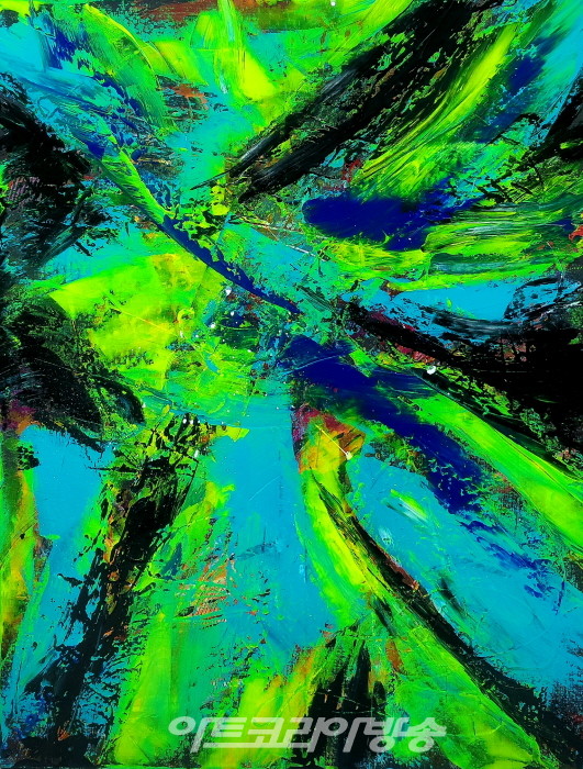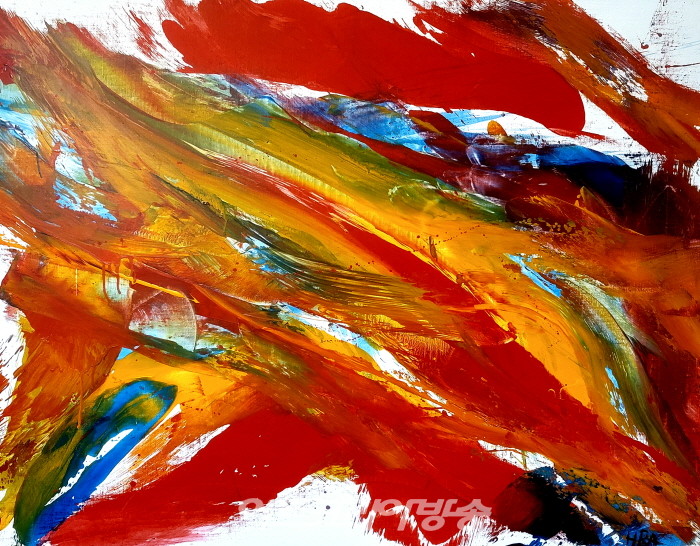 어느 날 나의 작품들은 가없는 바다에서 끝없는 시간을 되풀이하여 밀려오고 밀려가는 파도처럼 보이기도 하고, 잡히지 않는 오묘한 소리의 파장처럼 느껴지기도 한다. 또 어떤 날에는 지난날의 기쁨, 슬픔, 눈물, 웃음, 미소, 회한, 상처, 고통, 고뇌들이 내 심장의 뜀박질과 엮어져 분출하는 순간이 포착됨을 느끼곤 한다.
