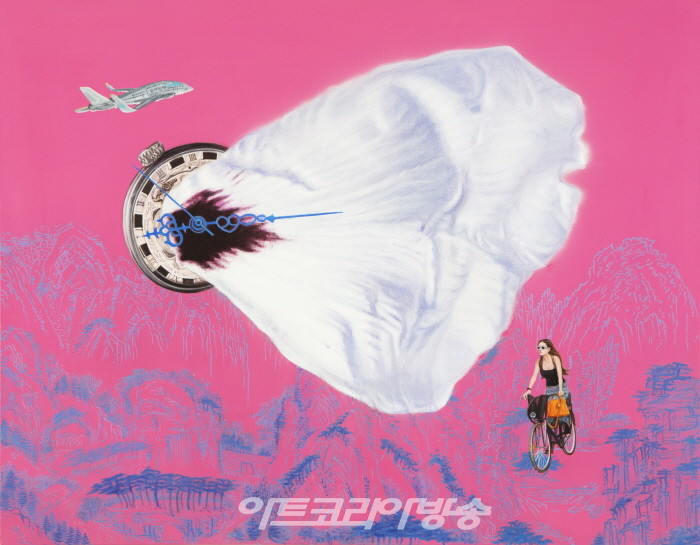 조현애 작가는 시간을 주제로 작업을 한다. 작가는 과거의 명화에 현재의 이미지를 결합하여 현실과 가상의 경계가 없는 공간, 과거와 현재와 미래의 모호한 시간의 흐름을 시각적 은유로 구성하여 보여주고 있다.