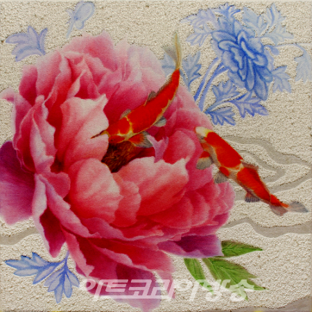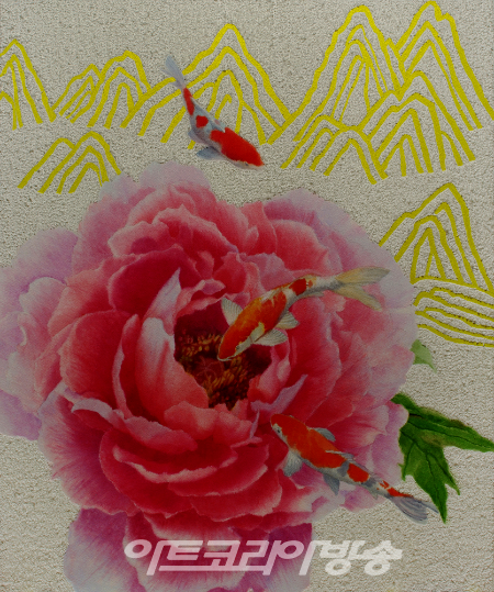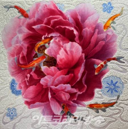 60대 중견작가인 성애리선생은 부귀영화를 상징하는 꽃인 모란과 다산을 상징하는 비단잉어를 이용해 현실과는 유리된 세계, 즉 작가가 꿈꾸는 조형적인 자신만의 창의적이고 창조적인 세계를 표현하고 있다.