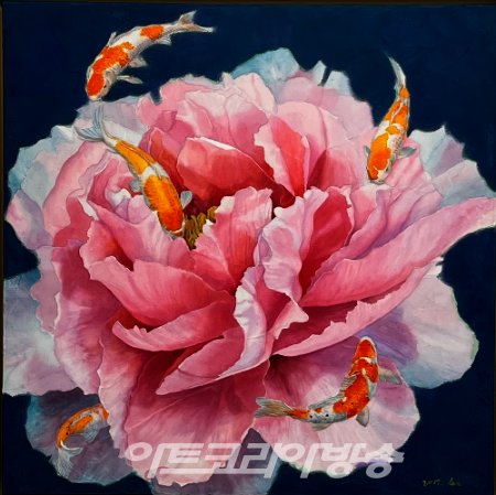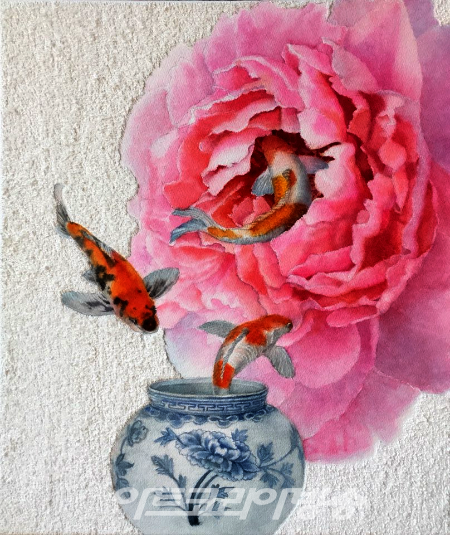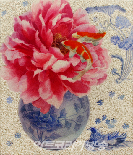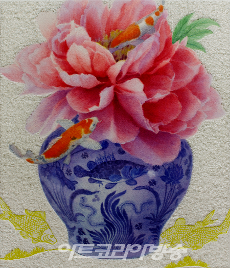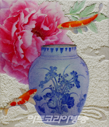 2022년은 보다 안정되고 풍요롭기를 바라는 마음에 모란꽃 가득 담긴 청자항아리에 비단잉어가 유영하는 아름다운 작품 30여점을 전시한다