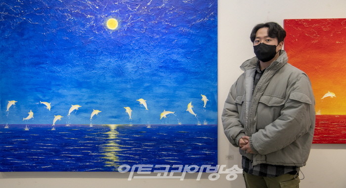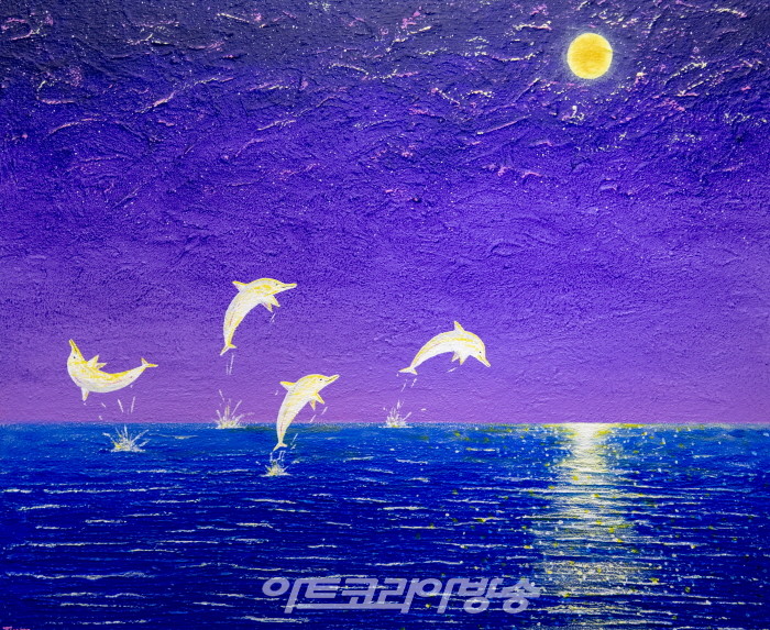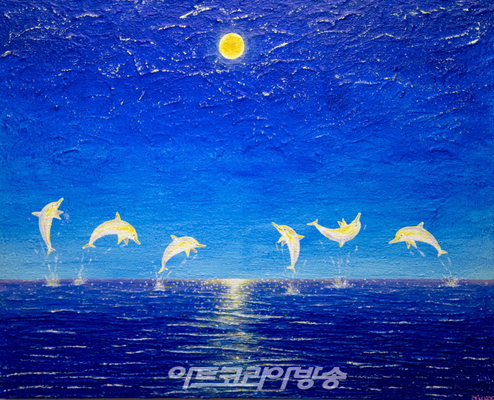 달을 향해 뛰어 노는 돌고래는 힘차며 우리가 꿈을 꾸듯이 즐거워 보인다. 그렇게 작품을 감상하며 작가의 작품을 보면서 평온하고 행복한 이야기를 만들어 가시길 바란다.