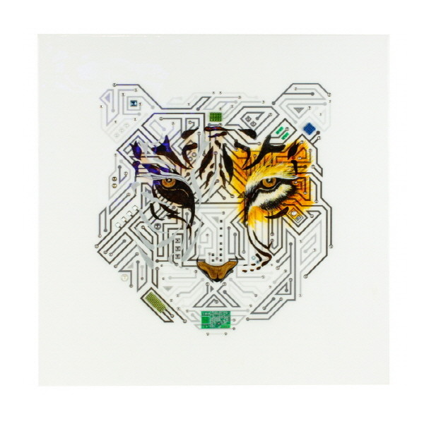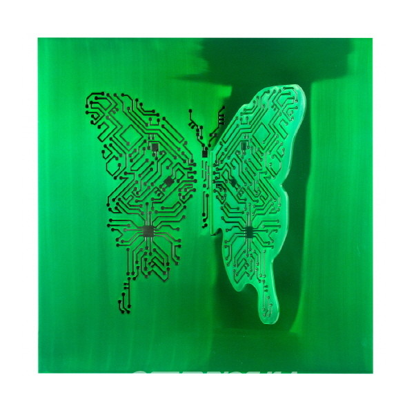 캔버스 위에 크리스털 등 복합매체를 활용한 작품 [MR.TIGER], [MS.TIGER](2022)은 호랑이 머리 형태로 배치된 회로도와 호랑이의 날카로운 눈매의 재현이 공존한다. 해바라기의 반이 마치 엑스레이 사진처럼 골격을 드러내는 작품 [SUN FLOWER 1,2,3](2021)은 재현적 이미지가 보이는 부분이 각각 다르다. 나비 반쪽은 재현적, 다른 반쪽은 회로도인 작품 [데칼코마니](2020)는 마치 회로도에서 탄생한 인공생명체같은 모습이다. 배경에서 형태가 나오고 그 반대도 가능하다. 그것은 의태(擬態)--사전적 해석은 ① mimicry ② mimesis ③ simulation 등으로 나와있다--처럼, 자연 생태계에서는 이미 일어나는 일이다. 배경과의 일치는 조화이기도 하지만 죽음일 수도 있다. 하지만 폐기된 기계부품이 예술로 다시 탄생하듯이 죽음은 삶의 조건이 된다. 단색 배경의 하트 안에 ‘HOPE’, ‘WISH’, ‘GOOD’ 등의 단어를 넣은 2021년의 평면 작품에서 작가는 보편적인 가치를 말한다.
