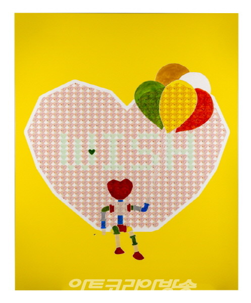 사회구성원 다수가 그 기능과 의미를 알고 있는 투명한 대상은 시간의 흐름에 따라 불투명한 사물로 전환되는데, 새로운 상품이 쏟아지는 만큼 유물화의 주기도 빨라진다. 배수영의 작품은 원래부터 기호인 글자는 물론, 기계부터 인간, 자연물까지 그것들에 내재한 기호적 특징을 심미적 패턴화 한 것이다. 기호는 대개 분절화되어 있으며 그 자체가 기표와 기의로 분열된다. 하트 모양의 머리에 해부학적 형태를 따라 굴곡진 관들로 표현된 캐릭터는 상징적 존재로서의 인간을 표현한다. 이 캐릭터는 평면 작품부더 공공미술까지 여러 맥락에 놓여 메시지를 전달한다. 캔버스 위에 혼합매체로 제작된 작품 [TTOMA’S WISH](2021)는 캐릭터가 희망의 풍선을 들고 걸터앉은 모습같기도 하고, 그것을 향해 나아가는 모습으로도 보인다. ‘WISH’라는 글자와 관으로 단순화된 인체와의 만남은 기호적 조건을 공유한다.