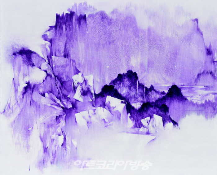내가 그의 첫개인 전에서 주목한 그의 <내면의 진동이나 파장처럼 미묘한 감정> <눈 덮인 설산에 순수함과 과 눈 내리는 날의 모습> < 작열하는 듯하다 핑크빛의 열정적인 꽃> <설산의 눈처럼 깎아지른 빙벽의 풍경>등에 집중하는 모습 등은 여전히 그의 감성이 부드러움과 내면의식과 닿아 있다는 것을 말해준다.