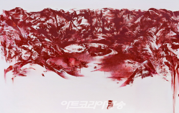 이어 "그 풍경들은 마치 필터를 낀 것처럼 전체가 푸른색 혹은 붉은 색 등 단색화 톤으로 보여주고, 이러한 기술은 마치 붓을 옆으로 뉘어 빗자루를 쓸어내리듯 묵찰법의 인상을 떠올린다. 특히 풍경이 마치 필터를 통하여 보이는 듯 그런 형상들이 화폭을 지배하고 표현에서도 빠른 속도감 있게 그린 나무들이 또 다른 나무들을 물고 늘어지듯 안개 속에 물기가 스며든 설산의 풍경이 파노라마처럼 펼쳐진다."고 평했다.