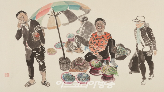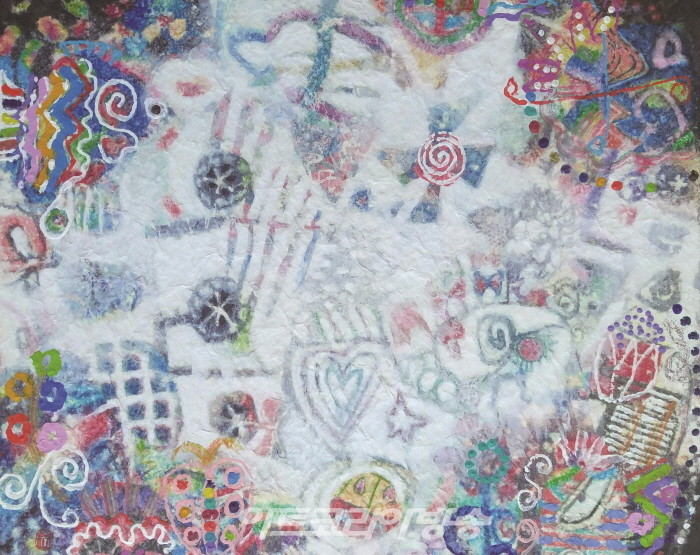 감상자들의 이야기도 마음대로 찍어내어 보게 하려는 의도로 늘 화선지의 앞자락을 여백으로 넉넉하게 비워두려 한다. 슬프고 답답하며 괴로운 일상은 눈 밑에 덮어두고 늘 기쁘고 화려하며 아름다운 감정을 감상자들과 함께 담아 소통하려는 여백의 공간이다.