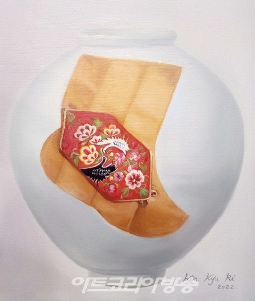 오는 4월 1일부터 21일까지 3주간 개최되는 전시에는 정물, 목단, 원앙, 화병 등 구상작품과 전통버선이 수 놓인 도자 등 여러 작품이 선보인다.
