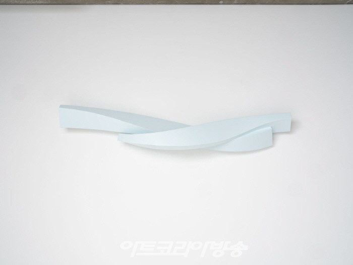 이번 전시는 자유롭게 여백을 운용하는 듯한 붓글씨의 2차원 형상을 입체 구조로 구현한 기존 작업의 연장선 상에 있으나, 이전의 큐보이드(Cuboid) 시리즈가 단일 형태의 사각형이 자유로이 흘러가며 만들어내는 곡선의 거침없는 역동성에 집중하였다면, 이번 신작 자피노(Zapfino) 시리즈는 사각 단면을 이루는 네 꼭지점이 미끄러지듯 유영하며 만들어내는 전체적인 줄기의 유려함에 집중함으써, 관객에게 보다 복합적이고 몰입된 조형미를 제시한다. 작가는 이로서 시점에 따라 변화하는 공간의 여백과 여운을 창조하고, 수직과 수평, 기하학으로 이루어진 일상적 공간의 정적을 깨뜨리고 미적 쾌감을 선사하려는 지속된 의도를 더욱 견고히 한다.