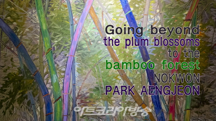 "매일생한 불매향" (梅一生寒 不賣香)이라고 매화는 일생 동안을 추운 밖에서 자라 겨울을 나고 봄에 꽃을 피우지만 그렇다고 해서 결코 향을 팔지 않는 지조도 있다. 이른 봄의 추위를 무릅쓰고 제일 먼저 꽃을 피운다는 매화가 많은 예술가에게 아름다운 모습이나 지조의 상징으로 시와 그림에 빈번하게 나타나는 이유이다. 그래서 일생을 독신으로 매화와 더불어 칩거 생활을 한 송나라 시인 임포(林逋) 이후로 문인들 사이에서 눈 덮인 매화나무 가지에 처음 피는 꽃을 찾아 나서는 심매(尋梅)가 문인들의 연중행사로 유명했다. 이토록 매화에 심취했던 그녀가 이번에는 문인화의 필법을 뛰어넘어 현대회화로도 부족함이 없는 작품으로 대나무 숲을 보듬고 돌아왔다. 작가는 2년 전 개인전에서 이러한 대나무 숲으로의 변신을 예고하는 대나무 채색 수묵화 200호 크기의 대작 1점을 살짝 공개했었다. 그러나 사군자의 매화에서 대나무로의 주제만 바꿀 줄 알았는데 작년 방문한 작가의 작업실에는 그 예상을 완전히 뒤엎었다. 실제 광양의 대나무 숲을 방불케 할 만큼 온통 대나무 그림으로 넘쳐났고, 그뿐만 아니라 표현과 스타일, 색채에서 기법도 표현양식도 장엄한 100여 점 이상의 대나무 숲으로 가득 차 있었다.