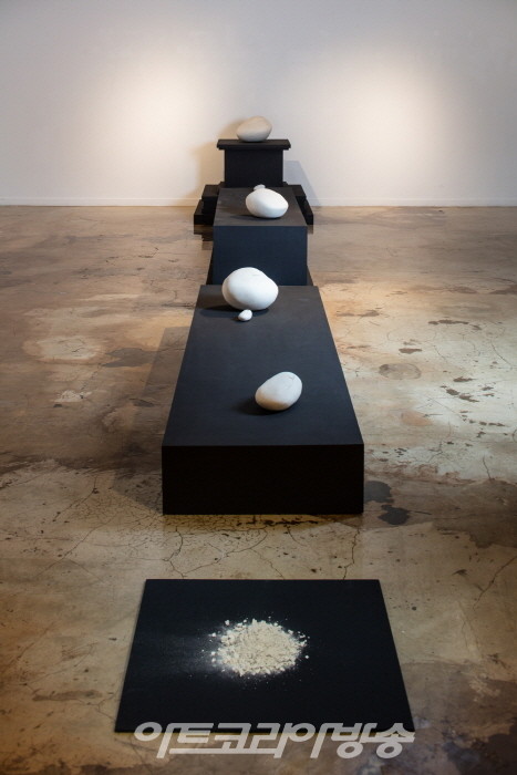 작가는 ‘자신을 비워내야만 타자에 대한 겸허함이 묻어나고 그것은 평온한 부드러움으로 채워진다.’라는 메시지와 함께, 작업 결과인 ‘빈 돌’ 과 ‘침묵의 섬’ 작품 이미지와 설치를 통하여 전시장 전체가 하나의 통일된 작품으로 연출한다.