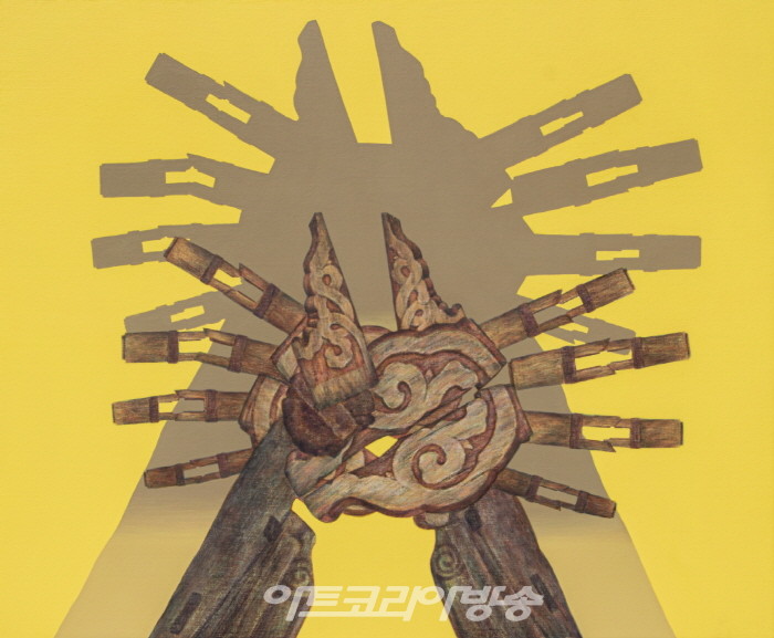 숭례문의 구조를 분석하고 구성 부품을 일상적 사물이나 신체 등으로 재구성한 <나무 부품 시리즈>가 그러하였다. 작가는 캔버스를 사포로 갈아내 현재와 과거의 시간의 간극을 채워나갔다.