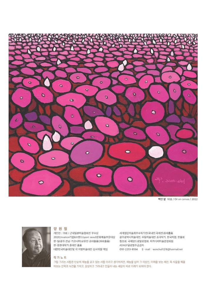 이 시대 작가는 무엇을 고민하며 예술의 순수성은 무엇인가? 작가는 무엇을 이야기하고 있는지 생각을 하면서 예술의 순수정신을 갖고 작품세계를 펼쳐나가야 한다.