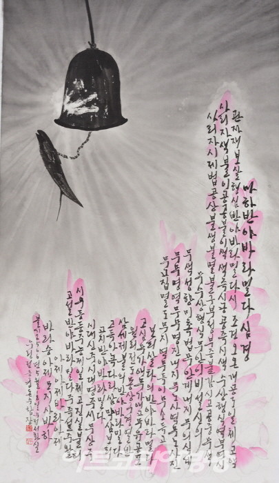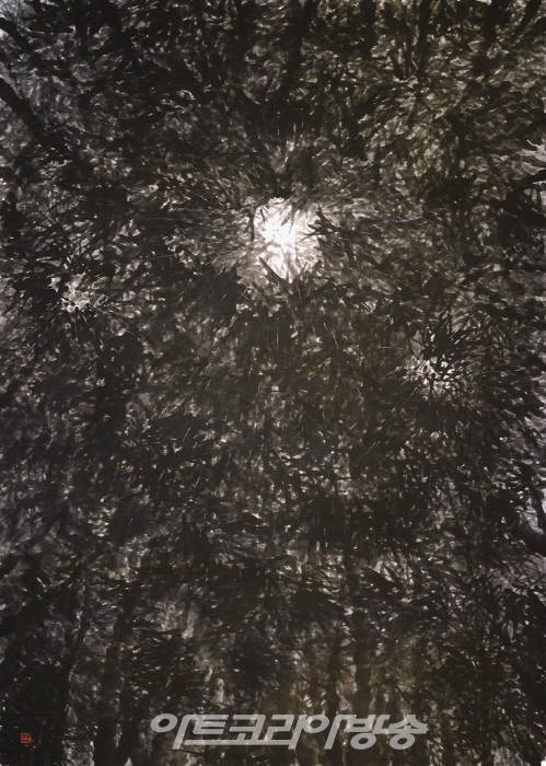 작품명 "생명의 약동"은 숲이 숨 쉬는 공간은 자유, 평화로 인식하고 이 믿음에 희망과 번영의 꿈을 담아 기쁨의 에너지로 표현했다. 매혹적인 열정의 빛은 또 하나의 빛이 아닌 전혀 새로운 '람바의 빛'이다. "해탈" 작품은 현세에서 삼라만상과의 만남과 헤어짐 속에 찾아오는 인간의 백팔번뇌 사슬. 그 사슬을 끊고자 하는 열망을 풍경 이미지와 반야심경 글씨로 만들었다. "대숲 속에서" 작품은 대숲에서 명상하는 가운데 감정의 파노라마와 빛의 파생을 보았다. 그 강렬한 힘은 희망, 기쁨, 행복 그리고 사랑의 결정체였다. 수많은 대나무 잎을 치면서 선과 선이 결합하고, 그 결과 수묵은 발묵과 파묵으로 빛의 힘이 뿜어져 나왔다.