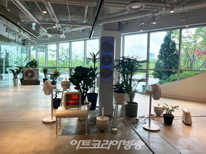 전시장에 들어서면 각기 다른 날씨에 작동하는 가전제품들이 한 공간에 모여 적정 온습도를 유지하기 위해 쉼 없이 작동하며 전력을 소모한다. 정재희의 <이상한 계절>(2019)은 계절에 따른 날씨 변화가 자연스러운 것임에도 오직 인간 중심적인 시각으로 자연을 통제하면서 벌어지는 현 상황을 냉철한 시각으로 바라본다.