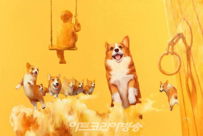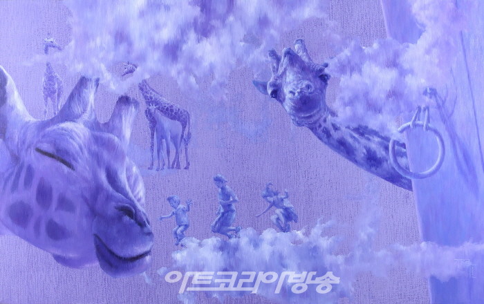 이번 전시에 새로이 등장한 드넓은 하늘과 구름 위를 자유롭게 뛰노는 동물과 아이들의 모습은 신선한 충격으로 와닿는다. 그의 작품을 관통하는 메시지인 ‘소통의 통로’인 문은 이번 전시에서도 인간과 자연, 동심의 세계가 어우러지는 초현실적인 세계로 관람객들을 초대하듯 활짝 열려있다. 특히 이번 전시의 작품은 자유분방한 붓질에 의한 우주 자연과 인간의 조화, 전통의 상징이자 소통의 매체인 문고리, 현실과 기억을 넘나드는 초현실적인 구성을 통해 새로운 조형적 가능성과 철학적 의미를 보여준다.