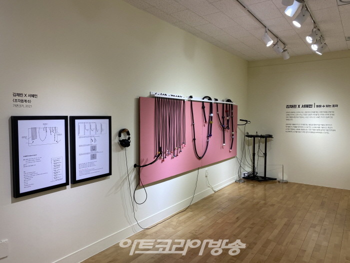두 번째 섹션 <들을 수 있는 조각>은 접촉을 통해 관람객과 관계 맺는 조형 작업을 선보이는 김채린과 소리의 다양한 경험적 의미를 탐구해 온 사운드아티스트 서혜민이 함께 만든 작품 <조각음계6>(2021)를 전시한다. 관람객이 작품을 직접 만지고, 소리를 만들어내고 직접 감상하며, 촉각이 청각으로 전이되는 경험을 제공한다. 또한 어린이들은 작품과 연계하여 소리가 나는 조각을 상상해 그림으로 표현하고 연주법을 작성해 보는 활동에 참여할 수 있다.