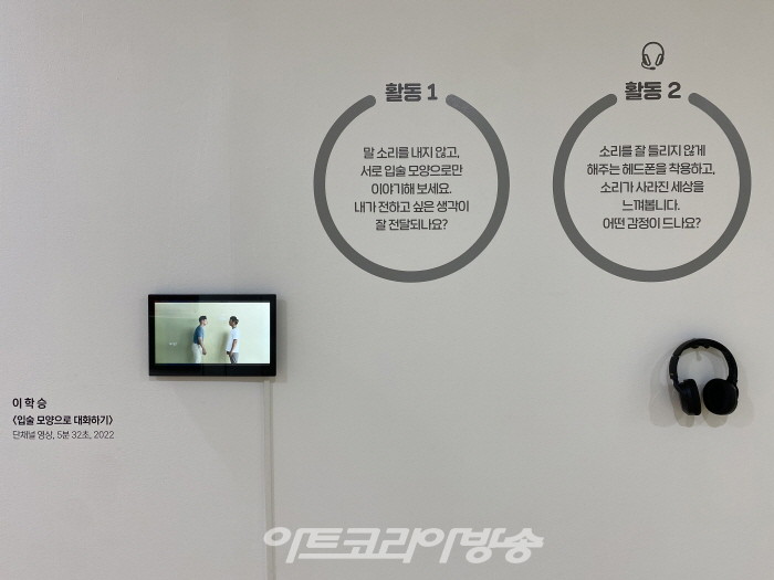 마지막 섹션 <소리가 사라진 세상>은 소리와 관련된 사회현상이나 이슈 관련 작업을 진행해온 이학승 작가의 작품을 선보인다. 청인과 농인 간의 의사소통 과정에서 보이는 차이를 퍼포먼스로 표현한 <호출>(2021) 시리즈와 소리 없이 입술 모양만으로 대화를 시도하는 장면을 담은 신작 <입술 모양으로 대화하기>(2022)가 전시된다.