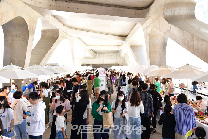 야외 어울림광장에서는 ▲ K컬처 패션쇼, ▲ DDP플리마켓, ▲ 서울라이트가 펼쳐진다. ▲ K컬처 패션쇼는 유구전시장 둘레길에서 K팝 대표 아티스트가 실제로 착용했던 무대의상을 연도별로 선보인다. 또 ▲ 서울라이트의 가을 행사인 미디어 파사드 쇼와 함께 국내 대표 디자이너인 지춘희 2023 S/S 미스지 컬렉션도 공개될 예정이다. ▲ DDP플리마켓은 40개 디자인 셀러와 곰표, 이수그룹 등이 참여하는 팝업 부스다. 힙한 동대문 패션 아이템이 가득한 동대문 셀렉샵에서 쇼핑을 즐기고 이곳에서만 판매되는 DDP×곰표 특별한정 콜라보 쿠키세트 구매도 가능하다.