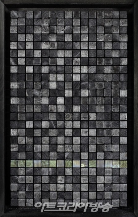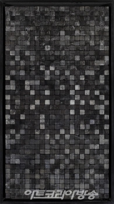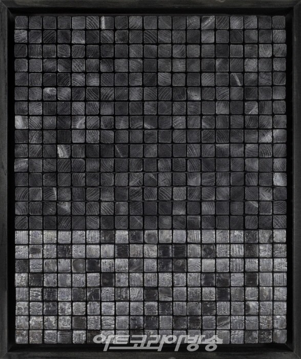 김기주 작가는 이러한 반복적인 행위에서 숯과 같은 깊이 있는 검은색과 은은한 오팔의 변채를 얻어 낸다.