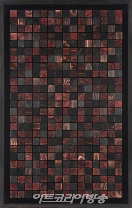 반사된 무지개 빛으로 발현한 규칙적인 나무 큐브들은 아크릴 물감으로 칠하는 방법이 아닌 색으로 물들이는 방법을 의도적으로 선택하여 자연과 인간이 나이테가 있는 부분과 없는 부분으로 조우를 시킨다.
