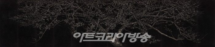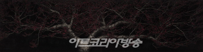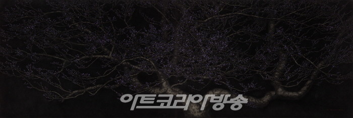 어디에나 누구에게나 같은 빛을 뿜어내는 달빛을 통해 동,서양의 미를 넘어서 모든 이를 공감 시킬 수 있는 정서적인 풍경을 담아내는 이재삼 작가의 한 벽면을 가득 메우는 대작을 보며, 겹겹의 어둠의 깊이를 그리는 그 행위 자체로 본성의 에너지를 담아내고 있음을 감상하길 바란다.